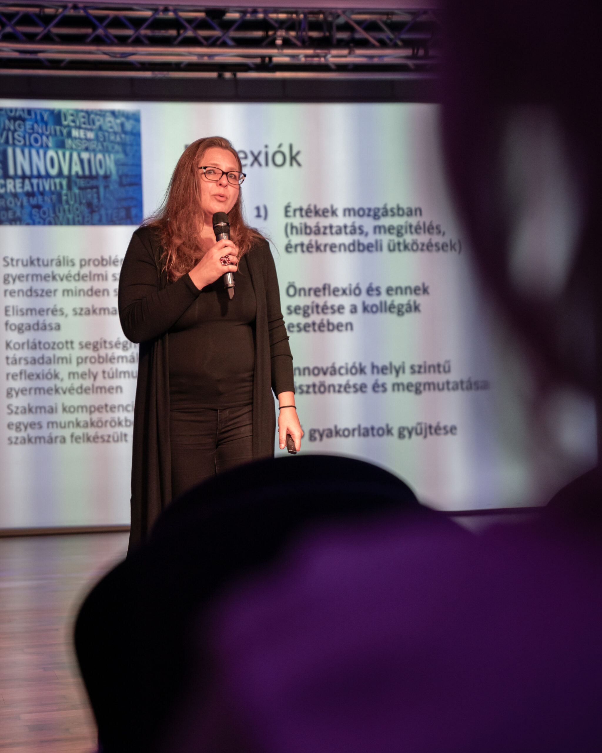 Ezután még egy előadás következett, Dr. Rácz Andrea az ELTE TÁTK Szociális Munka Tanszékének az oktatója a gyermekvédelmi innovációkat és a szolgáltatásfókuszú fejlesztéseket ismertette. Az önmagába záródó gyermekvédelem ellensúlyozásaként több megoldási, nyitási lehetőséggel is találkozhattak így a gyermekotthoni munkatársak.